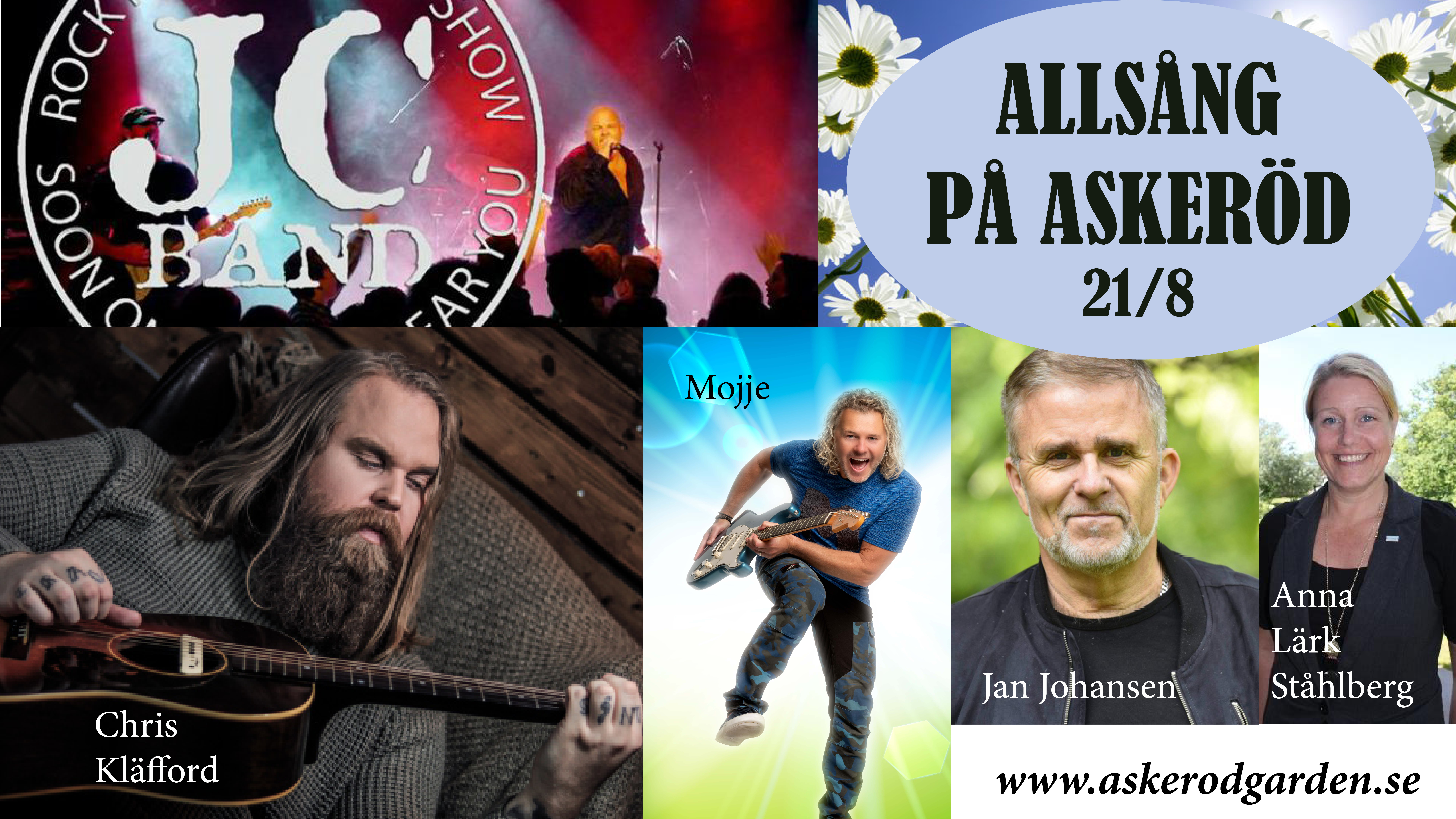 Denna eftermiddag bjuder på ett härligt program med artisterna Chris Kläfford, Jan Johansen och Mojje. Husbandet JC-Band guidar oss genom dagen tillsammans med dagens konferencier, Anna Lärk Ståhlberg.